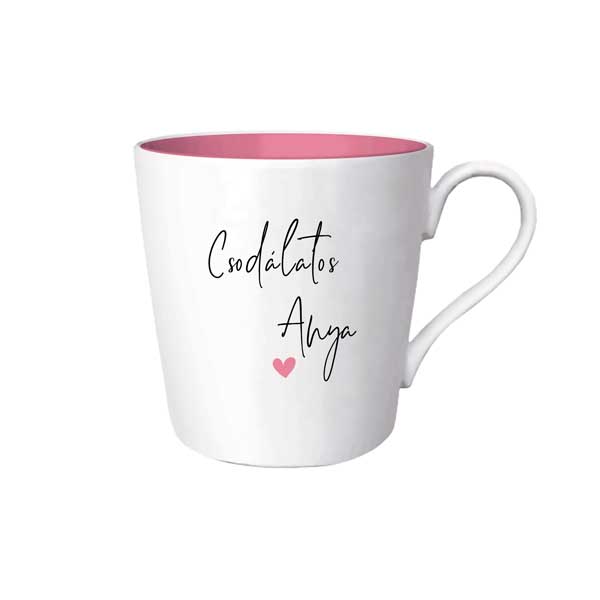 Fehér színű, rózsaszín belsejű, Csodálatos anya felirattal ellátott, bájos kerámia bögre. Remek Anyák napi, vagy szülinapi ajándék anyának. Ha Neked van a világon a legjobb édesanyád, akkor mutasd ki ezzel aprósággal a szeretetedet. Biztosan jól fog neki esni a reggeli kávéja ebből a szép bögréből.