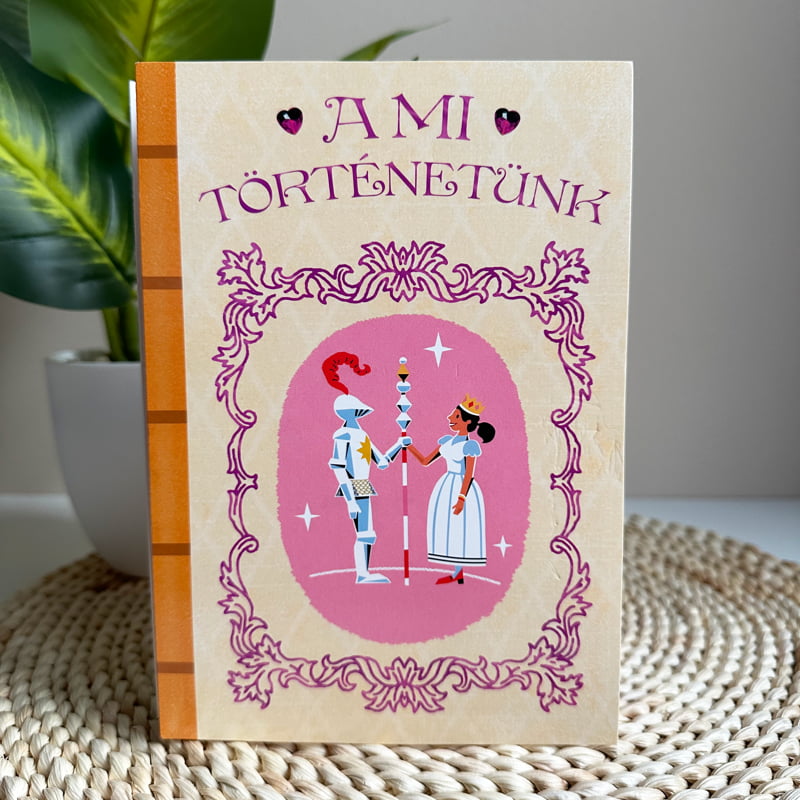 A lap elején egy hercegnő és egy délceg lovag látható, fölöttük, pedig az alábbi kedves mondat  olvasható: „A mi történetünk”. A képeslapot kihajtva egy cuki mesekönyv stílusú történet tárul eléd.