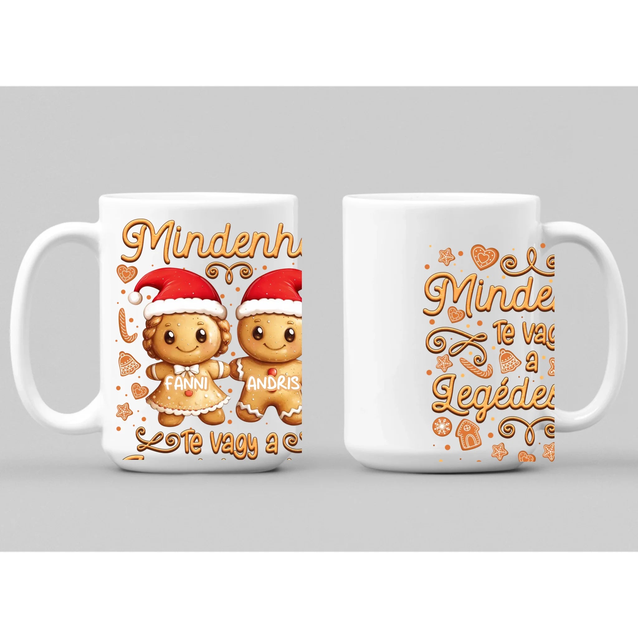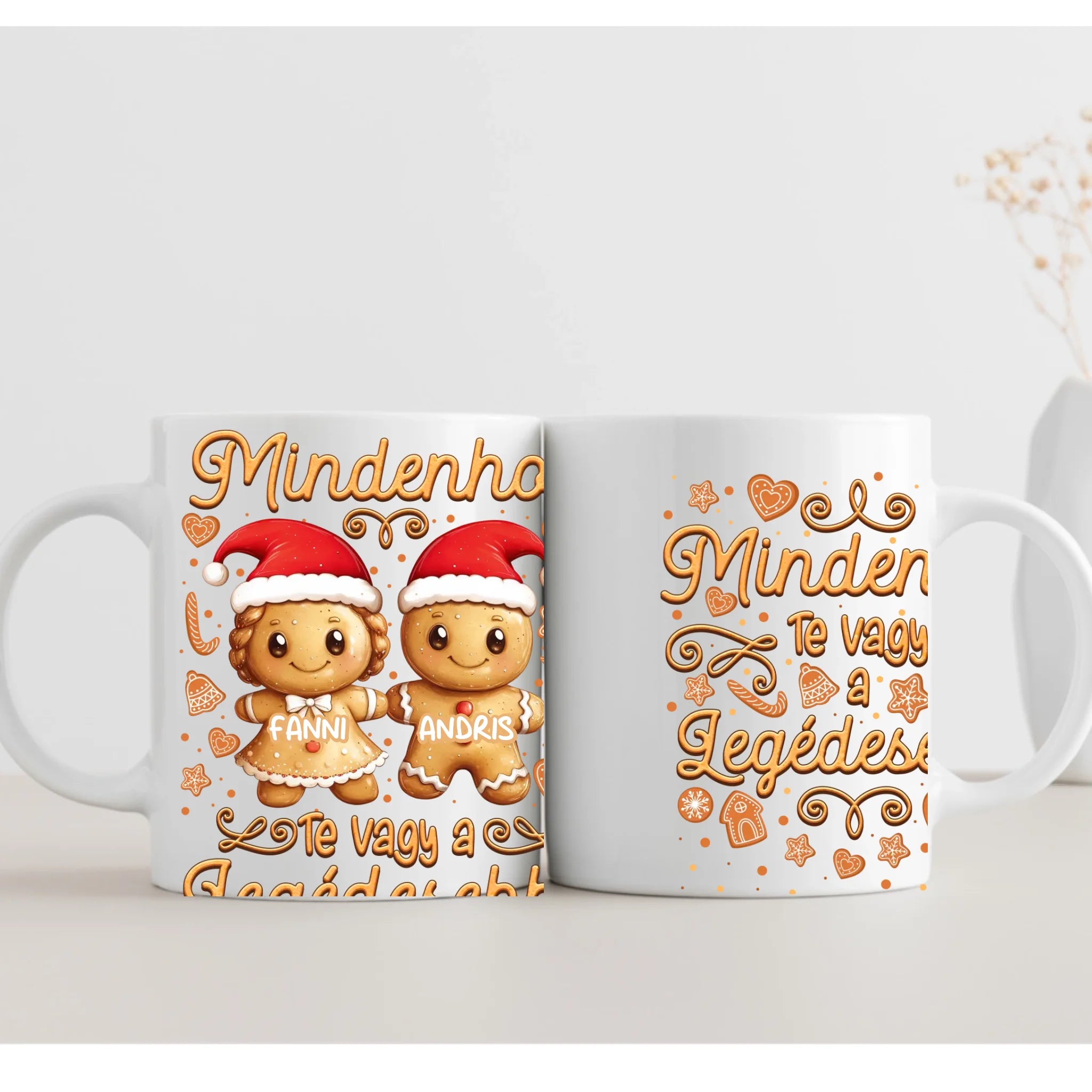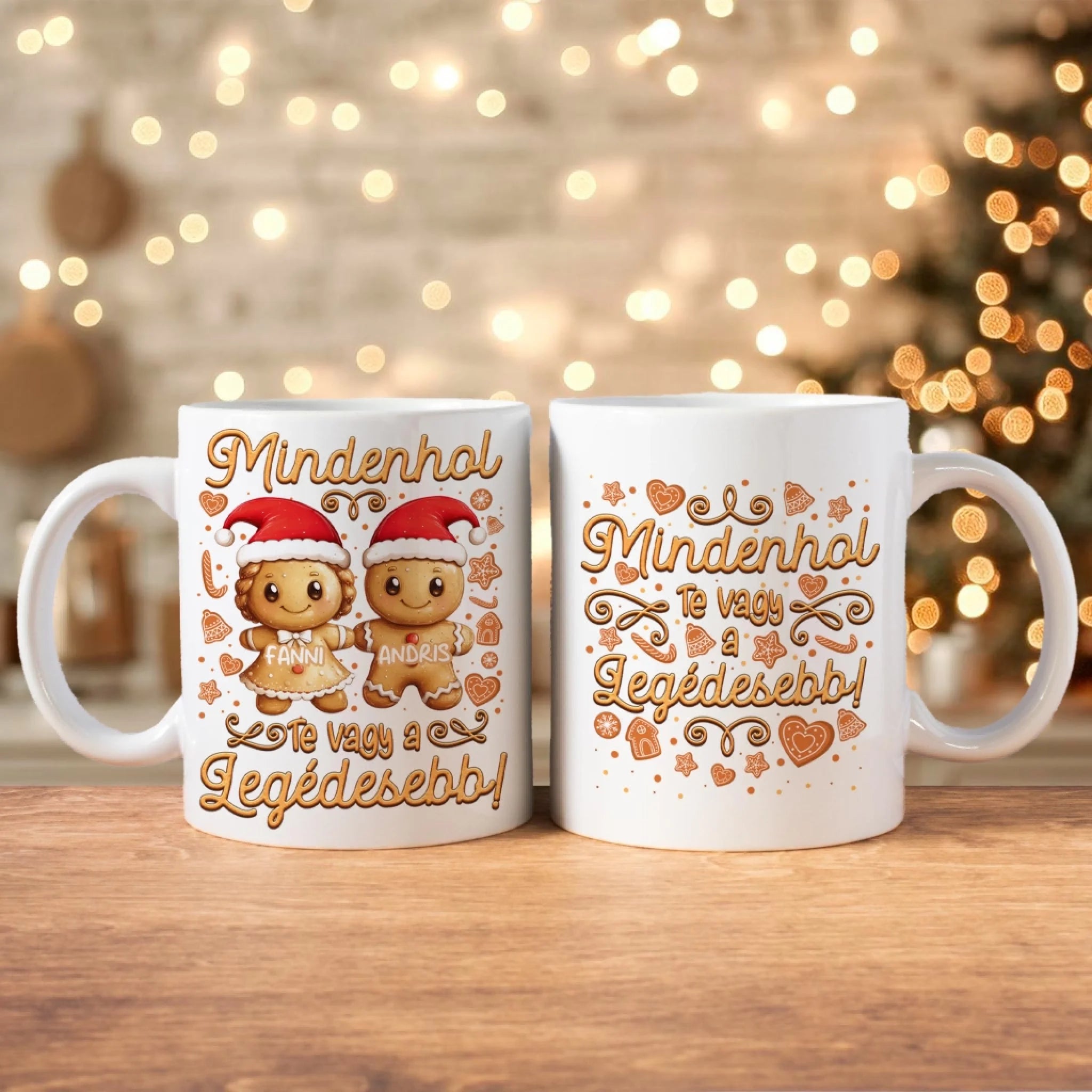 Lepd meg a szerelmedet ezzel a bájos bögrével, amelyen két aranyos mézeskalács figura díszeleg - egy neked, egy neki.