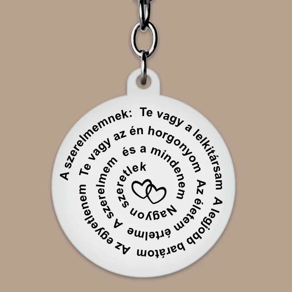 A Te vagy a mindenem, gravírozott kulcstartóról: