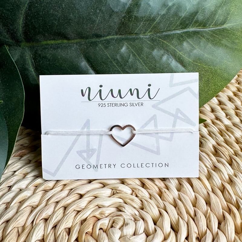 Az ékszer szívecske medálja 925-ös Sterling ezüstből készül. A medál méret: 11mm * 13mm * 0,8mm. A Niuni ékszer zsinórjának vastagság: 1mm. Az ékszerzsinór erős, szintetikus anyagú strapabíró pollamidból készült. A termékhez örök zsinór garancia is jár.