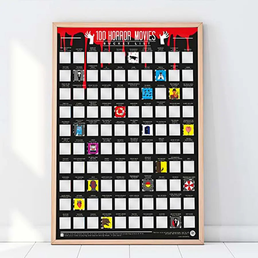 Ez a kaparós poszter 100 horrorfilmet rejt, így ha te is egy igazi horrorimádó vagy, akkor ez egy kötelező kellék számodra. Lehet, hogy jópár horrorfilmet láttál már közülük, de vajon megvan mind a száz?