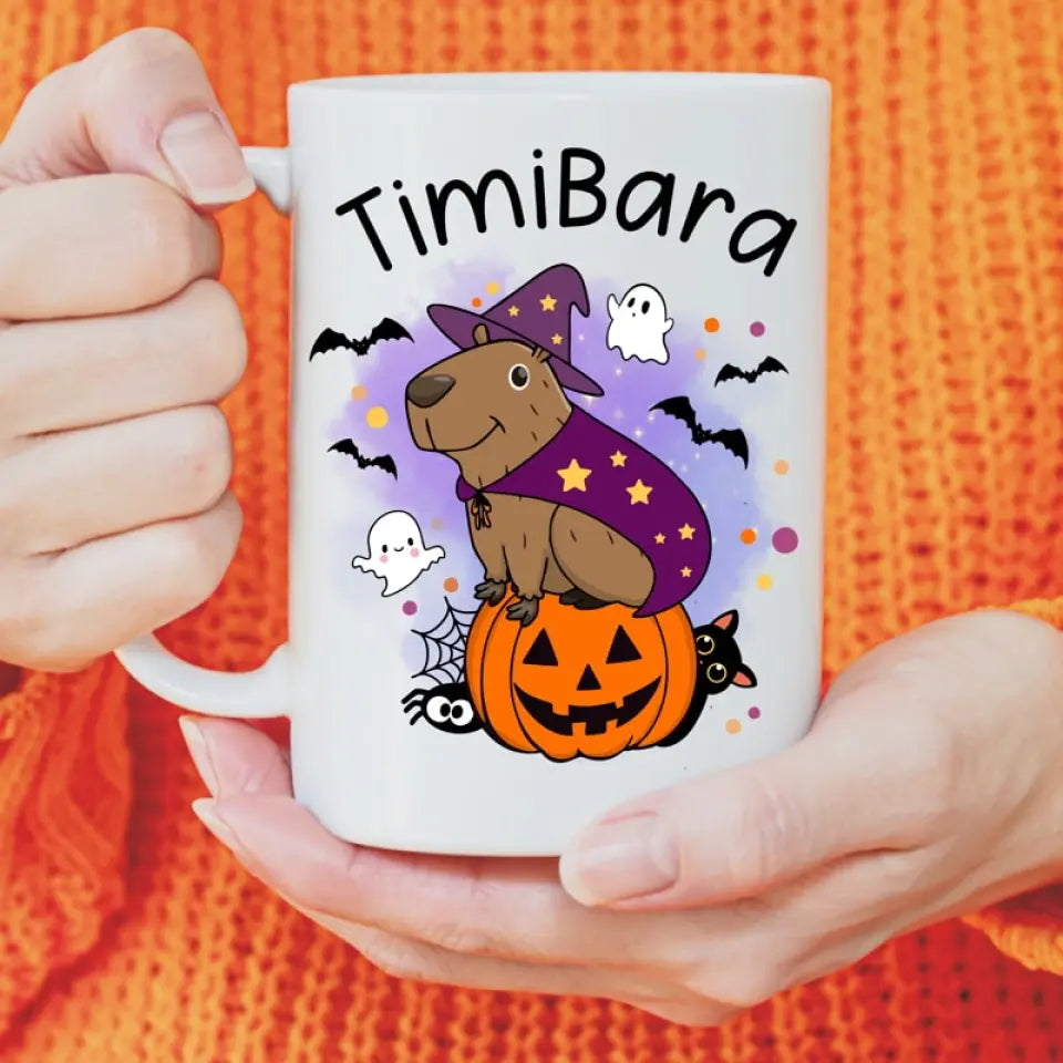 Az egyedi capybarás bögrén egy aranyos vizidisznó grafika található, melyre az ajándékozott nevét is megadhatod. A bögrét őszies hangulatúra terveztük. Találsz rajta töklámpást, denevéreket, szellemeket, fekete macskát és pókot. Egy őszimádó szerettednek biztosan nagyon fog tetszeni.