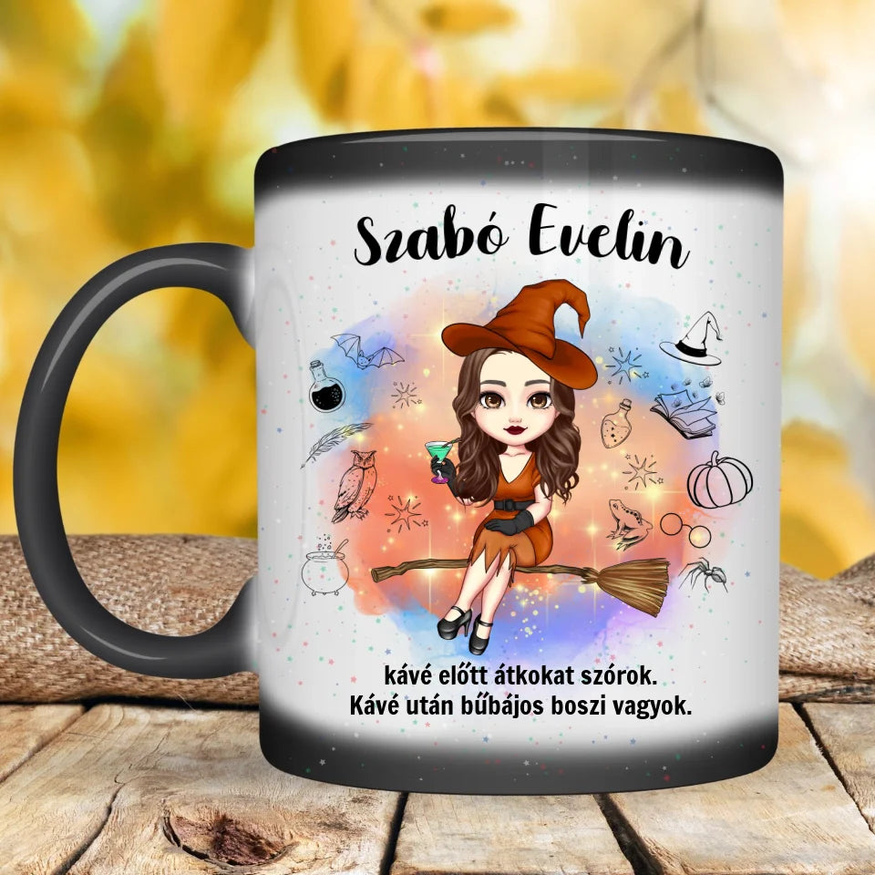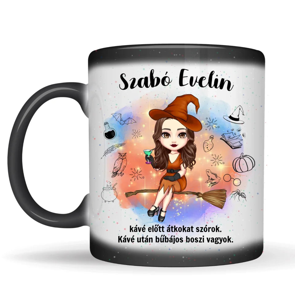 Vicces, boszis kávés bögre - glitteres, hőre változó verzió