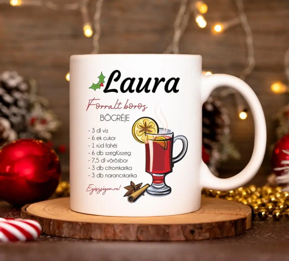 Cuki, saját neves forralt boros bögre rajta recepttel. Remek karácsonyi ajándék a barátnődnek, vagy egy kollégádnak. Biztosan nagyon fog neki örülni.