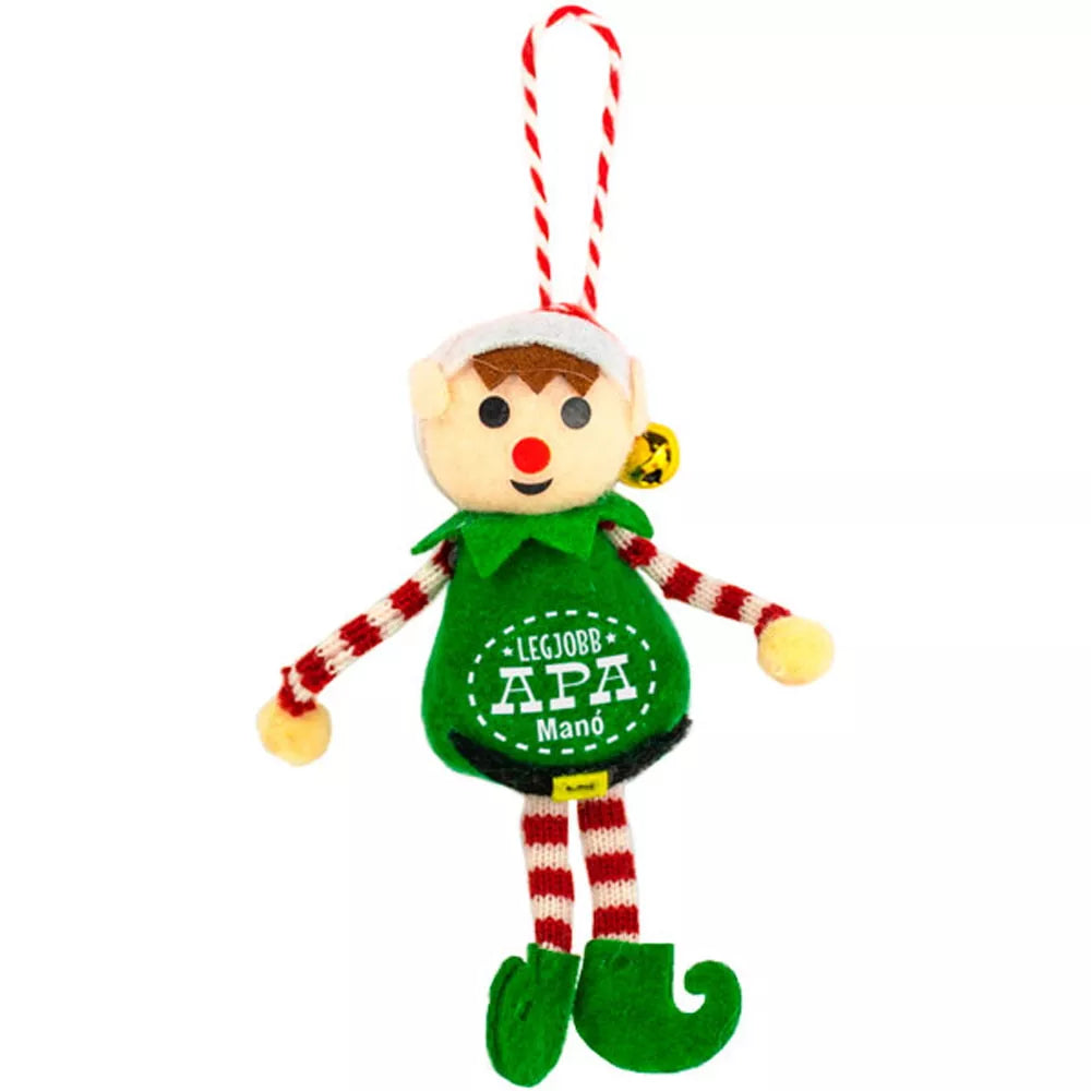 A szeretet ünnepén nincs is szebb mint kedveskedni a szeretteinknek. Karácsonykor mindenki ünnepi lázban ég és szebbnél szebb fákat díszítenek. Ajándékozd meg az apukádat ezzel a karácsonyi manó figurával, garantáltan a kedvenc dísze lesz a fán hiszen tőled kapja. A manó filc anyagból készült sapkáján egy kis csengettyű fityeg. Aranyos kiegészítő ajándék lehet ami meghozza az ünnepi hangulatot minden házba.