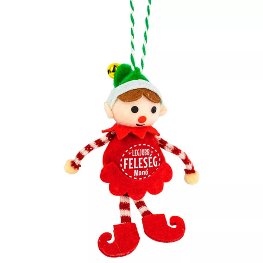 A szeretet ünnepén nincs is szebb mint kedveskedni a szeretteinknek. Karácsonykor mindenki ünnepi lázban ég és szebbnél szebb fákat díszítenek. Ajándékozd meg a feleséged ezzel a karácsonyi manó figurával, garantáltan a kedvenc dísze lesz a fán hiszen tőled kapja. A manó filc anyagból készült sapkáján egy kis csengettyű fityeg. Aranyos kiegészítő ajándék lehet ami meghozza az ünnepi hangulatot minden házba.