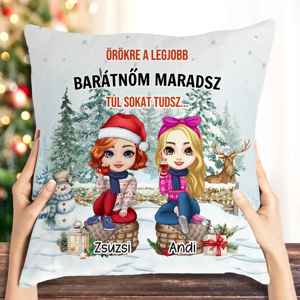 Szeretnéd meglepni a barátnődet? Mit szólnál egy ilyen karácsonyi hangulatú, cuki párnához? A szövege vicces, a külseje bájos és szuper dekorációs elem is. Szerintem biztosan tetszene neki.