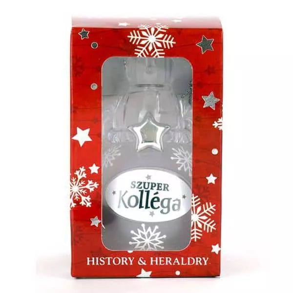 A hóember  teteje tiszta, átlátszó, míg az alja mattosított és apró fehér csillámporos hópihék díszítik. A figura a kezében egy szép ezüst csillagot tart, mely az igazságot és a reményt szimbolizálja.