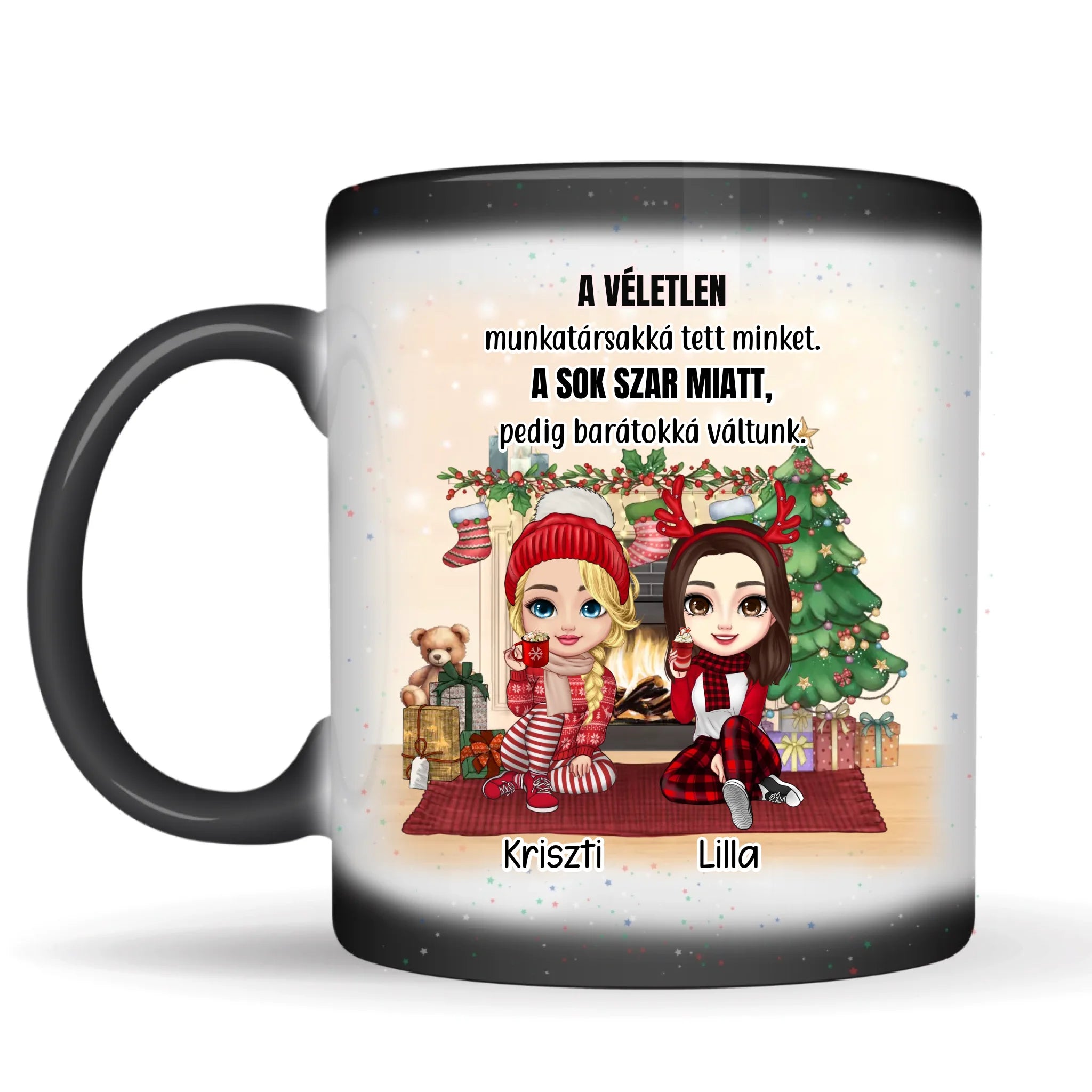 Jó kapcsolatban vagytok a kolléganőddel és szeretnéd őt meglepni Karácsonykor? Mit szólnál egy ilyen kolléganős hőre változó glitteres varázsbögréhez? A szövege vicces, a külseje cuki és még praktikus is. Szerintem biztosan tetszene neki.