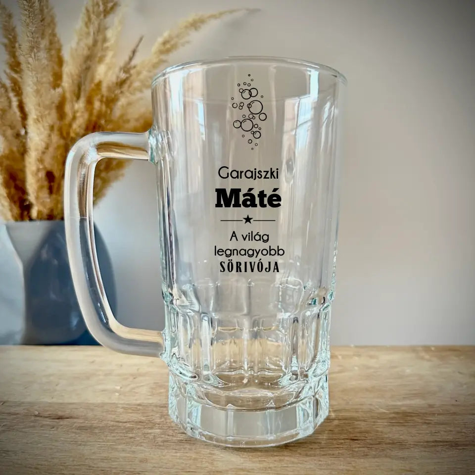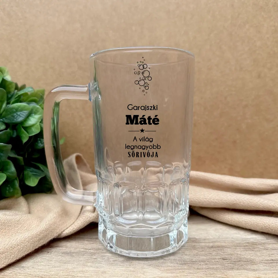 Vicces felirattal ellátott, neves söröskorsó üvegből. Tökéletes névnapi ajándék, sörimádó férfiaknak. Lepd meg vele az édesapádat, a testvéredet, vagy a legjobb haverodat.