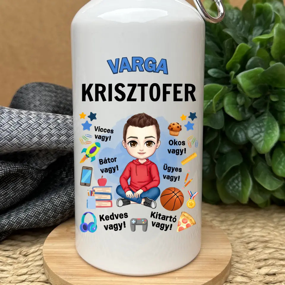 Ha a te gyermeked is nagy suli lázban ég, akkor a tanszerek megvásárlása mellett, lepd meg Őt egy ilyen szuper kulaccsal. A grafika tetől-talpig személyre szabható. A nevet is te adhatod meg a kulacs tetejébe.