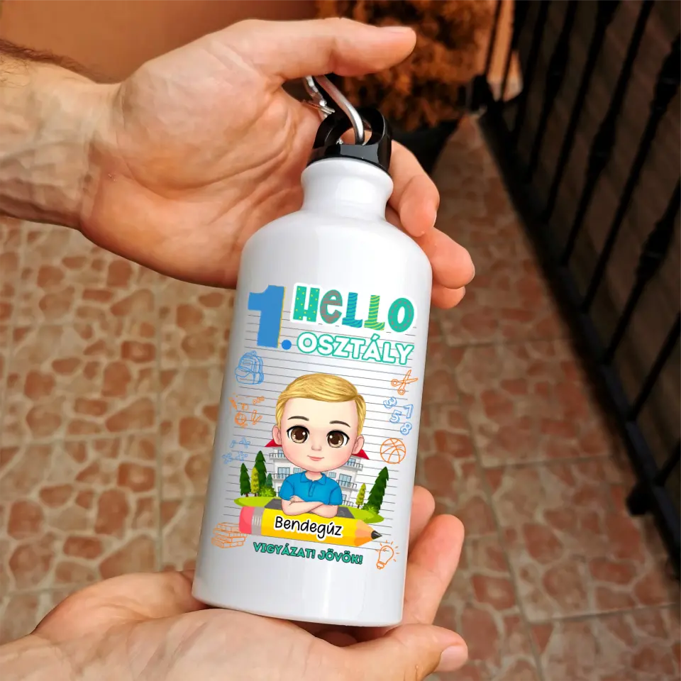Most kezdi a kisfiad a sulit? Biztosan nagy az izgalom és az öröm. A tanszerek megvásárlása mellett, lepd meg Őt egy ilyen szuper kulaccsal. A grafika tetől-talpig személyre szabható. A nevet is te adhatod meg a kulacs tetejébe.