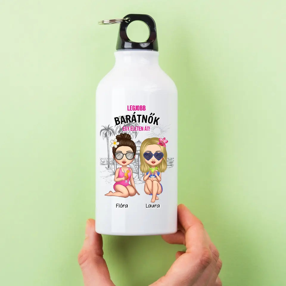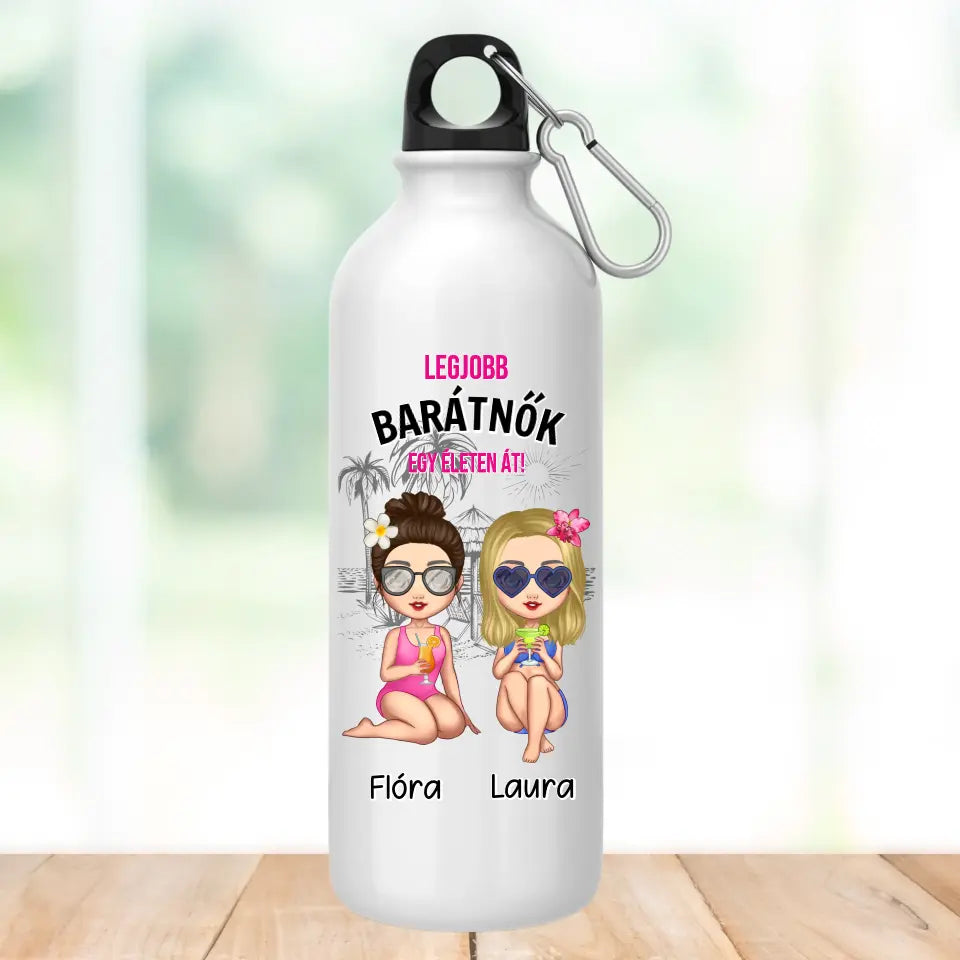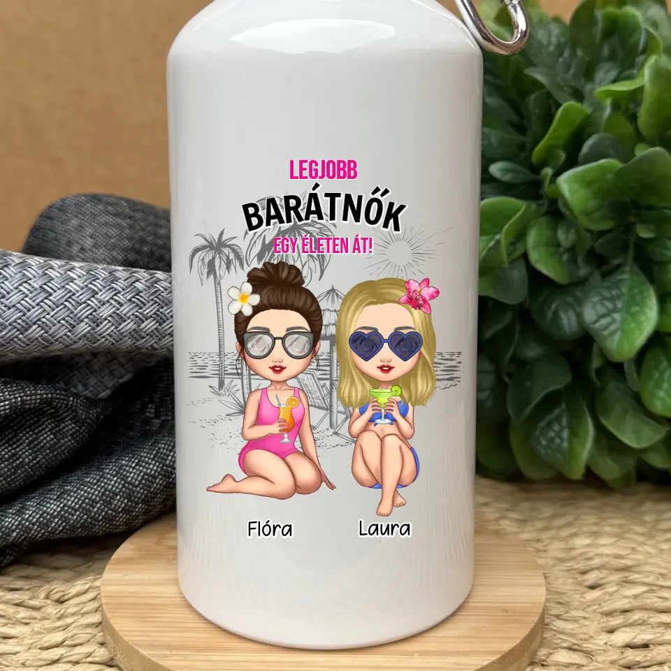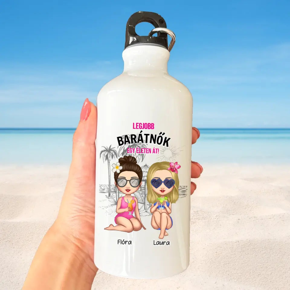 Ti vagytok a barátnőddel a legnagyobb strand királynők? Ha igen, lepd meg egy ilyen szuper, nyári hangulatú kulaccsal. A grafikák tetől-talpig személyre szabhatók. A neveket is te adhatod meg a kulacs aljába.