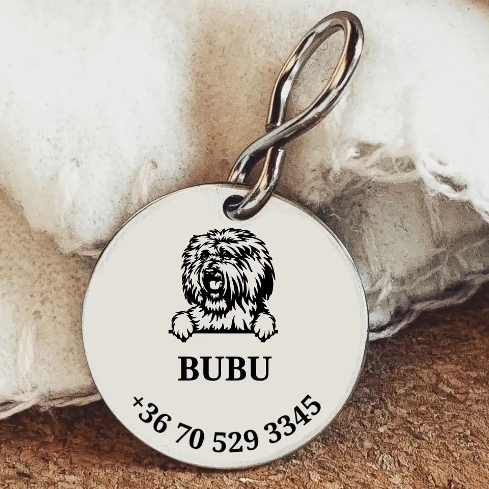 Egyedileg gravírozott kutya biléta Puli fajtájú kutyáknak. A biléta közepére egy Puli kutya grafikáját gravírozzuk, alá, pedig a kedvenc neve, vagy beceneve kerülhet. A nemesacél medál aljába a gazdi számát írjuk, de ha szeretnéd rákerülhet a címed is, vagy pedig két telefonszám. A medál anyaga nemesacél, így a kedvenc nem tudja elrágni, vagy kárt tenni benne. A bilétát masszív "S" kampóval készítjük. A nyakörvre fogó, vagy egyéb eszköz segítségével helyezhető fel. A biléta ideális méretű, nem zavaró a hordása. Cuki ajándék a blökinek és boldogság a gazdinak. Legyen biztonságban a Te kutyusod is! Ez a biléta minden kutyaimádó álma.