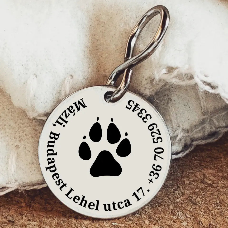 Egyedileg gravírozott kutyabiléta nagytestű kutyáknak. A biléta közepére egy kutyamancsot gravírozunk a medál aljába, pedig a címed, vagy akár a telefonszámod is rákerülhet. A kutyabiléta anyaga nemesacél, így a kedvenc nem tudja elrágni, vagy kárt tenni benne. A bilétát masszív “S” kampóval készítjük. A nyakörvre fogó, vagy egyéb eszköz segítségével helyezhető fel. A biléta ideális méretű, nem zavaró a hordása. Cuki ajándék a blökinek és boldogság a gazdinak. Legyen biztonságban a Te kutyusod is! Ez a biléta minden kutyaimádó álma.