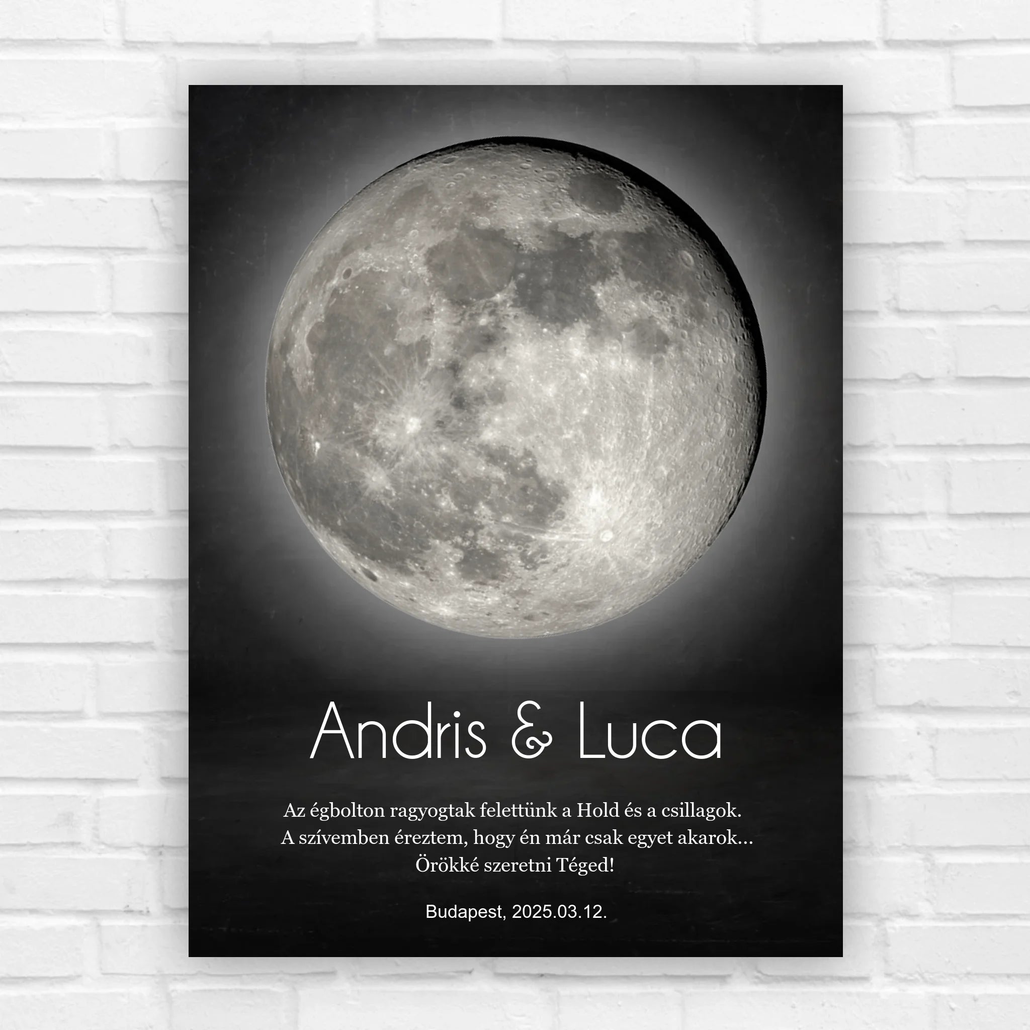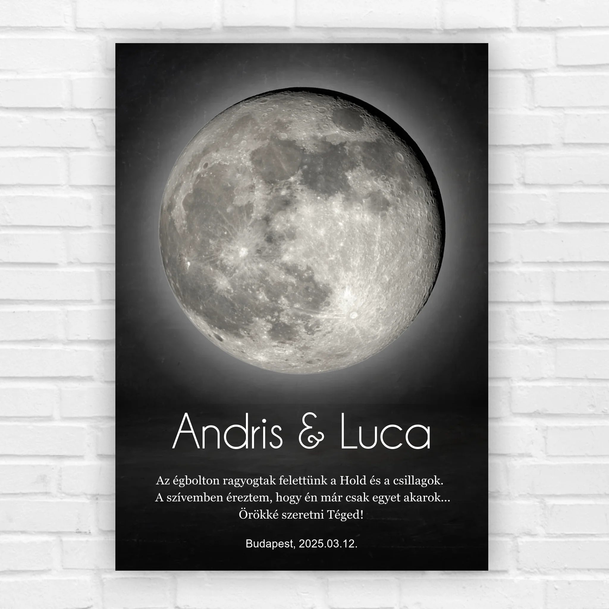 Emlékszel még rá, hogy milyen volt feletettek az égbolt, amikor egy pár lettetek? Nem baj, ha nem, hiszen mi segítünk visszaidézni ezt az emlékezetes napot. A legújabb termékünk a Holdfzis kép az adott helyszínhez és az adott naphoz kötve mutatja meg számodra a valós Hold állást. Hát nem különleges?