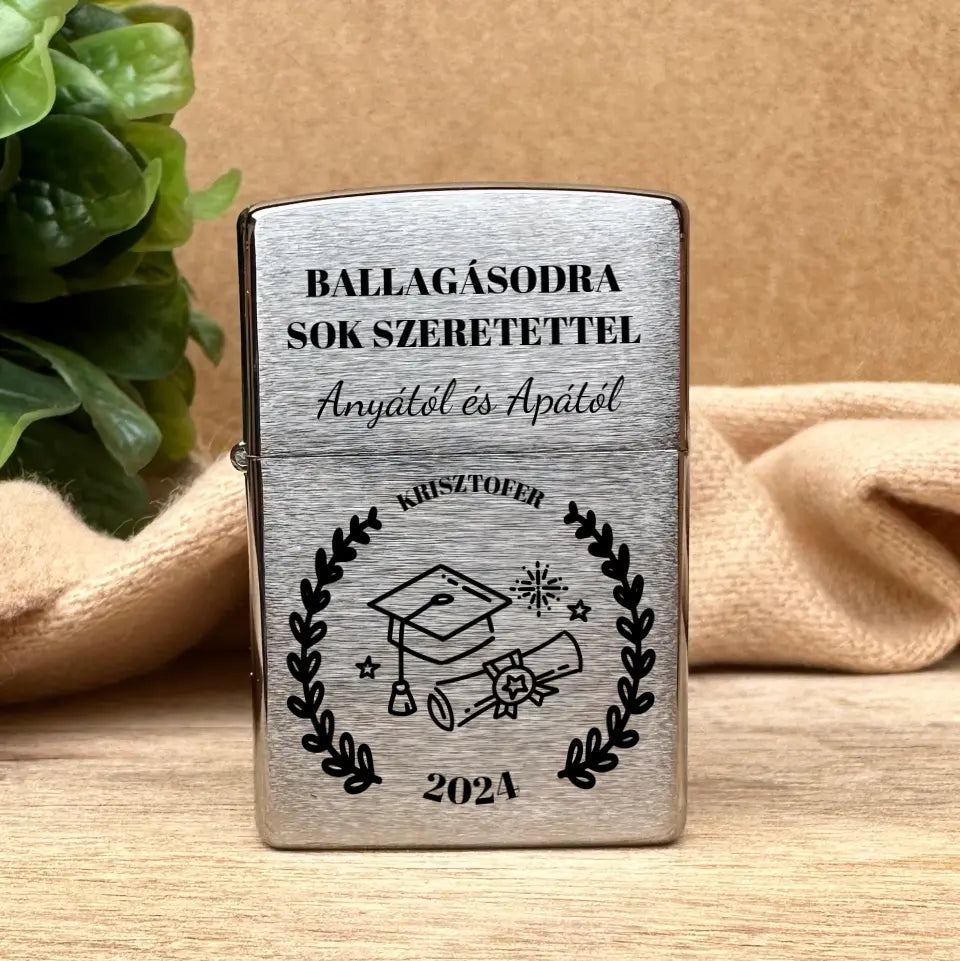 A Zippo teljesen személyre szabható. Az öngyújtóra az alábbi szöveg kerül: Ballagásodra sok szeretettel. Az ajándékozott nevét, a ballagás évét és az ajándékozó nevét te adhatod meg.
