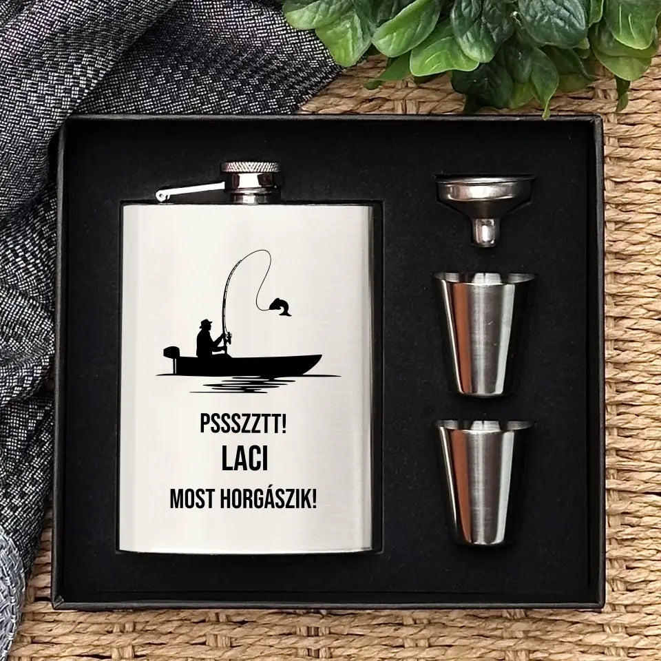 A gravírozott horgászos ajándék szett egy darab egyedi feliratos laposüveget, 2 db acél poharat és egy darab utántöltő tölcsért tartalmaz. Értékes és egyben vicces ajándék horgászoknak. A pecás ajándék flaskára megadhatod a nagy horgász nevét, így teljesen személyre szóló ajándékot tudsz neki átadni. Az ajándékozott biztosan oda lesz érte és minden alkalommal, amikor iszik a flaskából, eszébe jut, hogy kitől kapta.