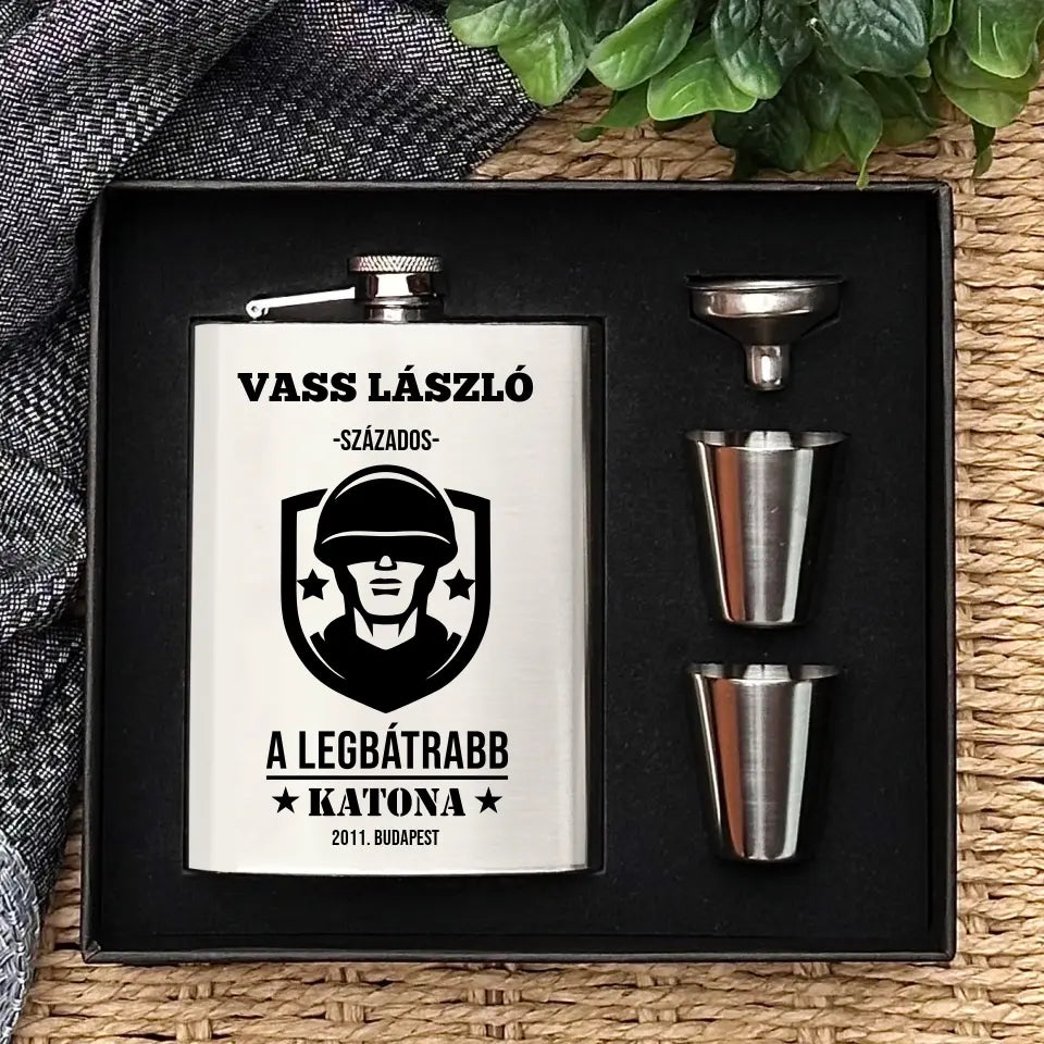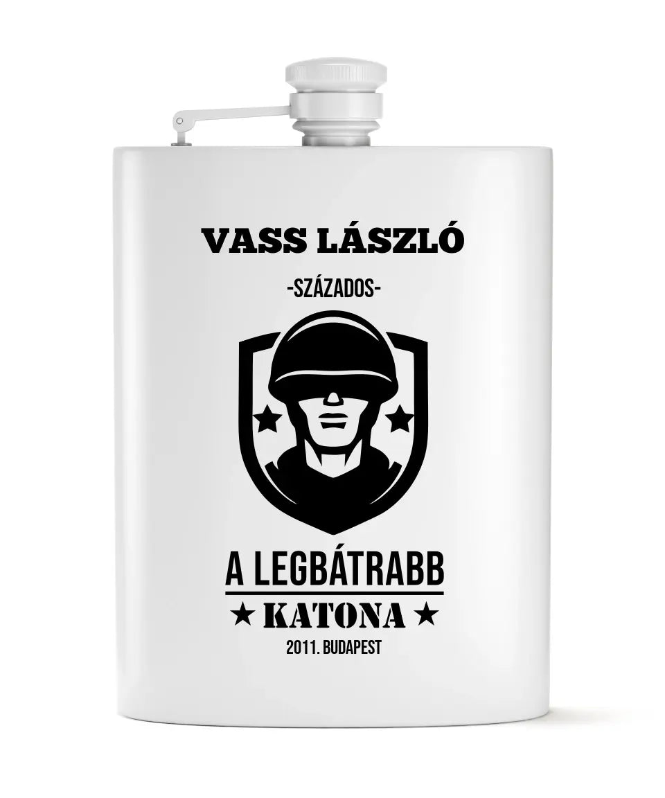 A katonák a világ legbátrabb emberei. Az életüket kockáztatják, harcba mennek, távol vannak hetekig a családjuktól és fogalmuk sincs, hogy mi lesz a munkájuk kimenetelének a vége. A Te családodban is van egy hős katona? Akkor lepd meg őt a szülinapján, vagy karácsonykor egy egyedi, katona ajándék flaskával. A flaskán egy katona grafikája látható, ezen kívül rágravírozzuk az ajándékozott teljes nevét, a rangját, az évet, amikor katona lett és a várost, ahol szolgál. Biztos vagyok benne, hogy nagyon fog tetszeni az ajándékozottnak, és büszkén viszi majd magával minden bevetésére.