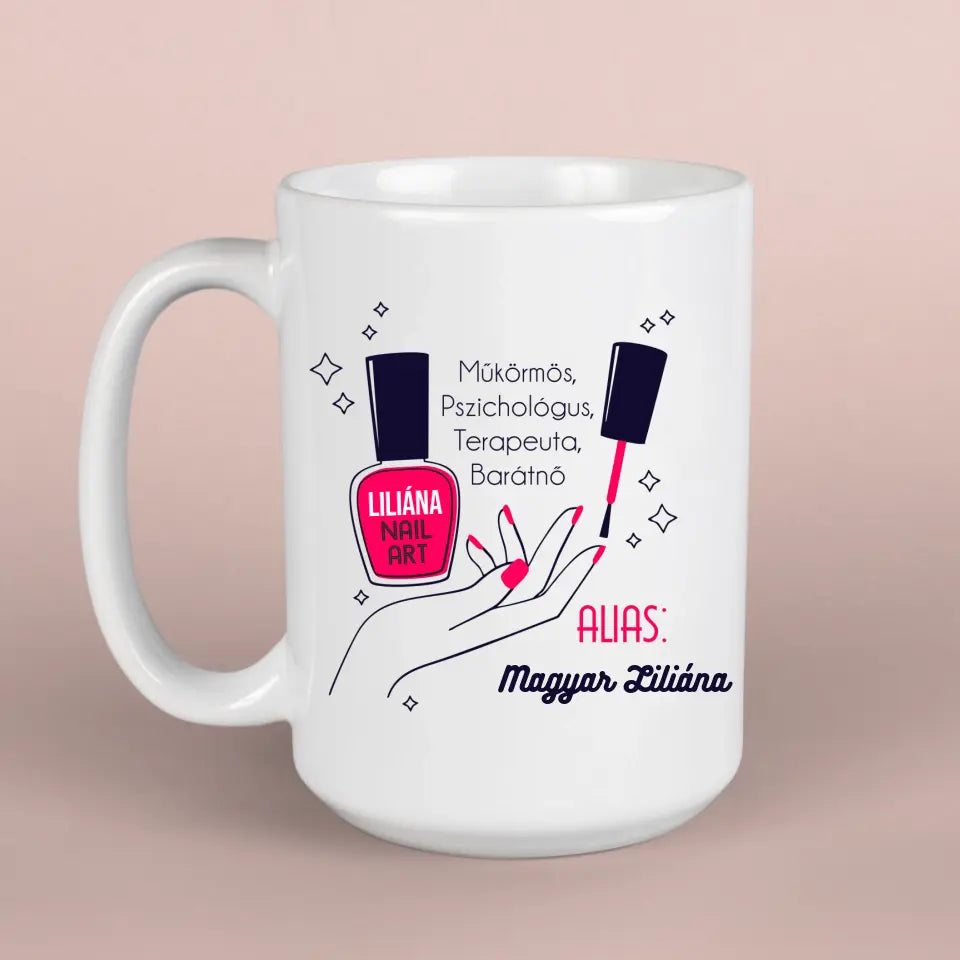 Ha Neked is ilyen jó fej körmösöd van, akkor egyik alkalommal ne csak üres kézzel érkezz, hanem lepd meg őt ezzel a szuper csajos, műkörmösnek szánt ajándék bögrével. Biztos vagyok benne, hogy nagyon fog neki tetszeni, és boldogan kortyolja majd belőle a kávéját. Oh, és mindig jól jönnek az ilyen plusz pontok, főként ha nehogy Isten elfelejtesz elmenni az időpontodra, vagy későn mondod azt le. :P