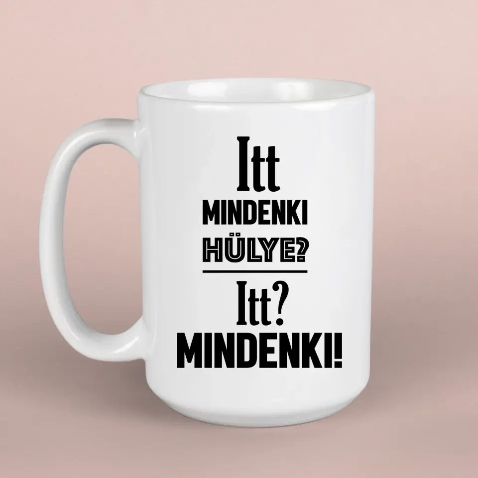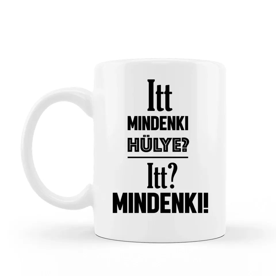 Poénos kávésbögre fiúknak és lányoknak egyaránt. Az "Itt mindenki hülye" bögre remek ajándék lehet egy haverodnak. Lepd meg vele és biztosan jót nevet rajta!