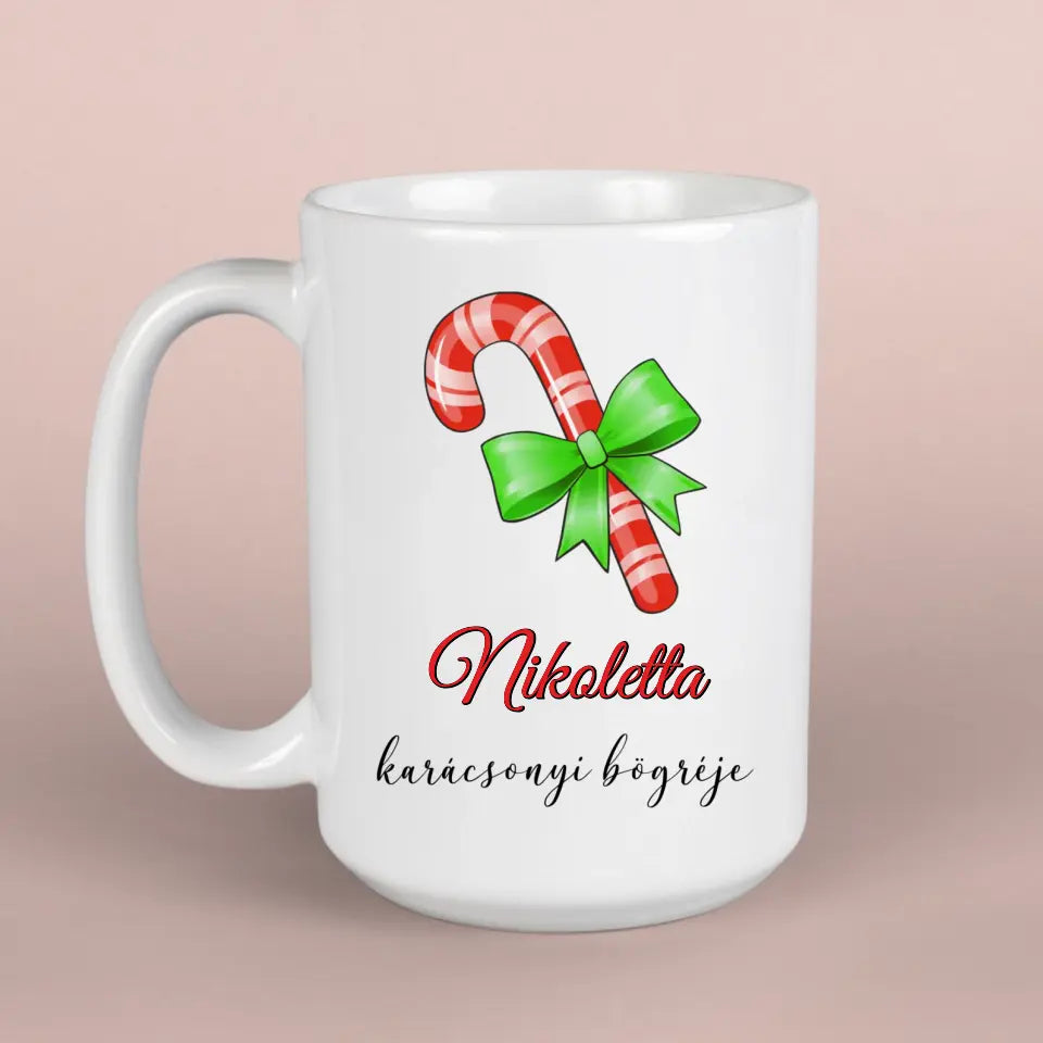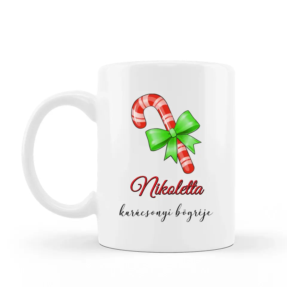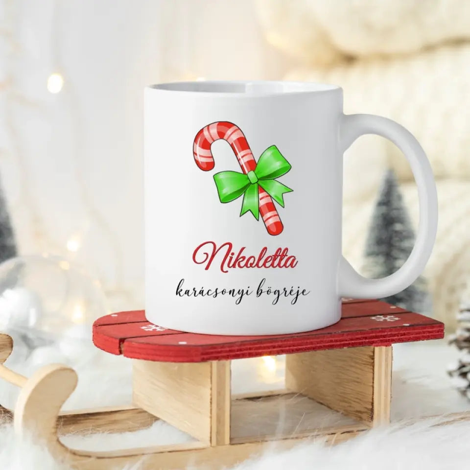 Ha már te is karácsonyi lázban égsz és szeretnéd elkezdeni az ajándékok vásárlását, akkor a legjobb helyen jársz. Ezzel a bögrével könnyen karácsonyi hangulatba tud jönni bárki. A bögrén egy cukorpálcika látható zöld masnival, valamint a bögre tulajdonosának a neve. Tökéletes ajándék lehet az anyukádnak testvérednek vagy egy nagyon jó barátodnak. A neves karácsonyi bögre bárki reggeli kávéját megédesíti karácsony előtt.