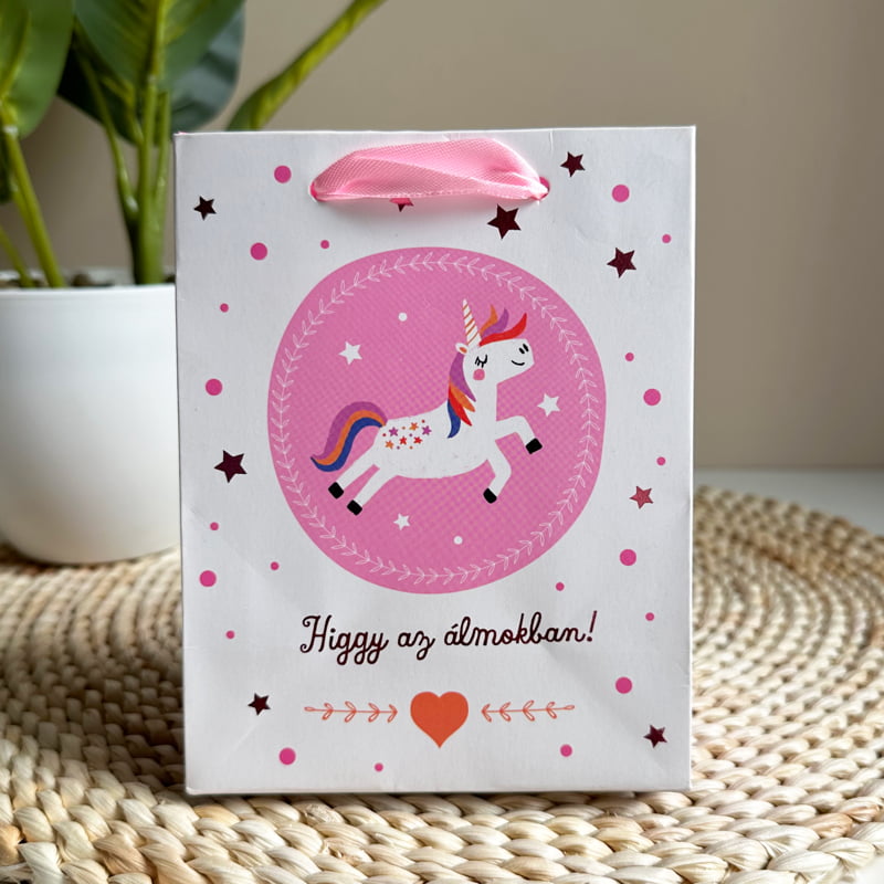 Válaszd az unikornisos ajándéktasakot szülinapi ajándék, névnapi ajándék, vagy ballagási ajándék csomagolására. Add ajándékba a testvérednek, az édesanyádnak, vagy a legjobb barátnődnek.